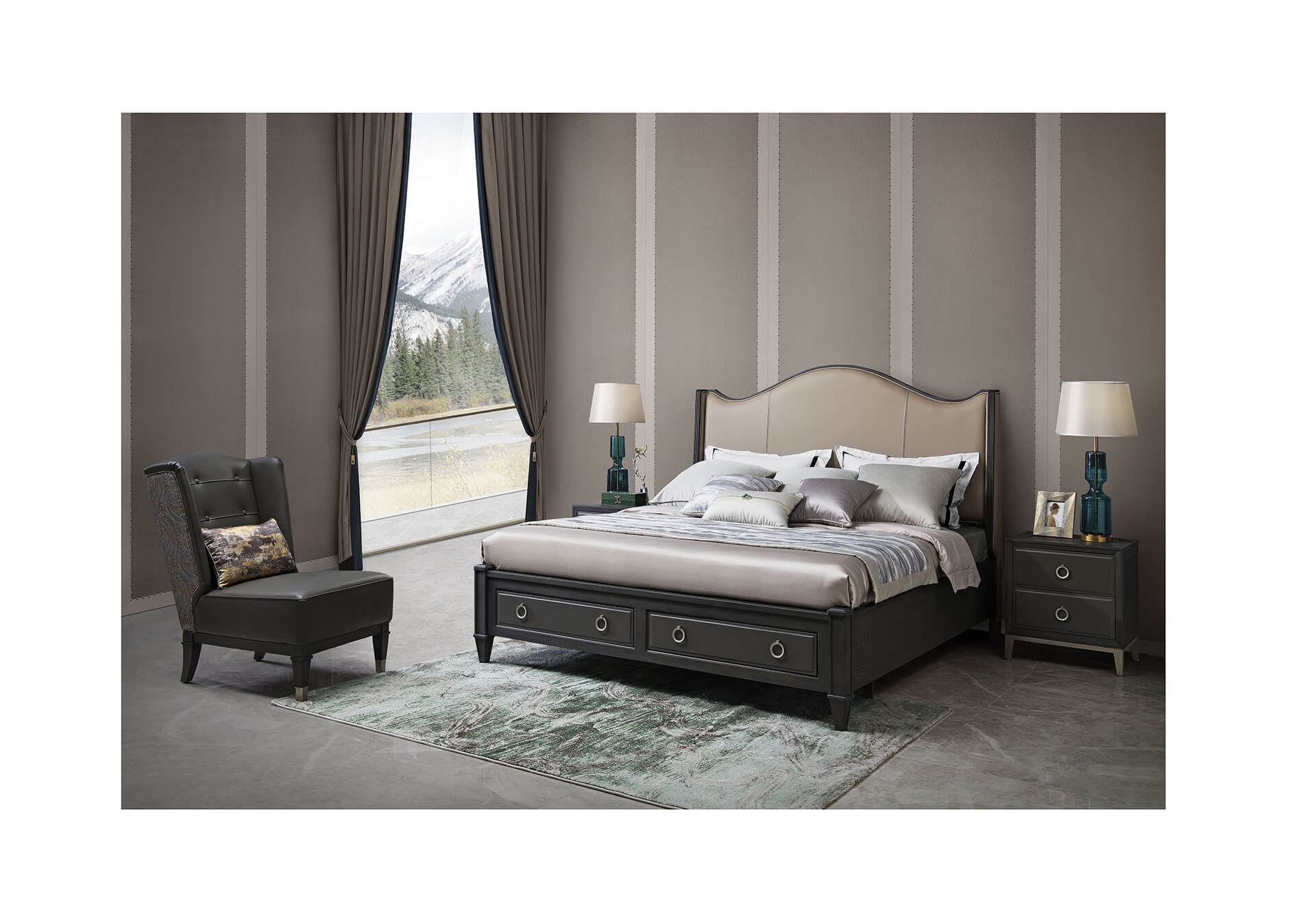 洛卡系列,以时尚美式为风格定位,整体设计极为简约,整体造型以直线为主,没有过多繁复的结构造型,可配性高,是美式风格的代表。同时融入了许多轻奢的金属元素与时尚几何的元素,代表着对高品质生活细节的追求。“轻”代表的是一种优雅态度,低调,舒适。洛卡系列在致力于新颖的设计的同时,更多地关注其细节和工艺,每一款家具的面料、工艺、材质、工艺都做到极致。